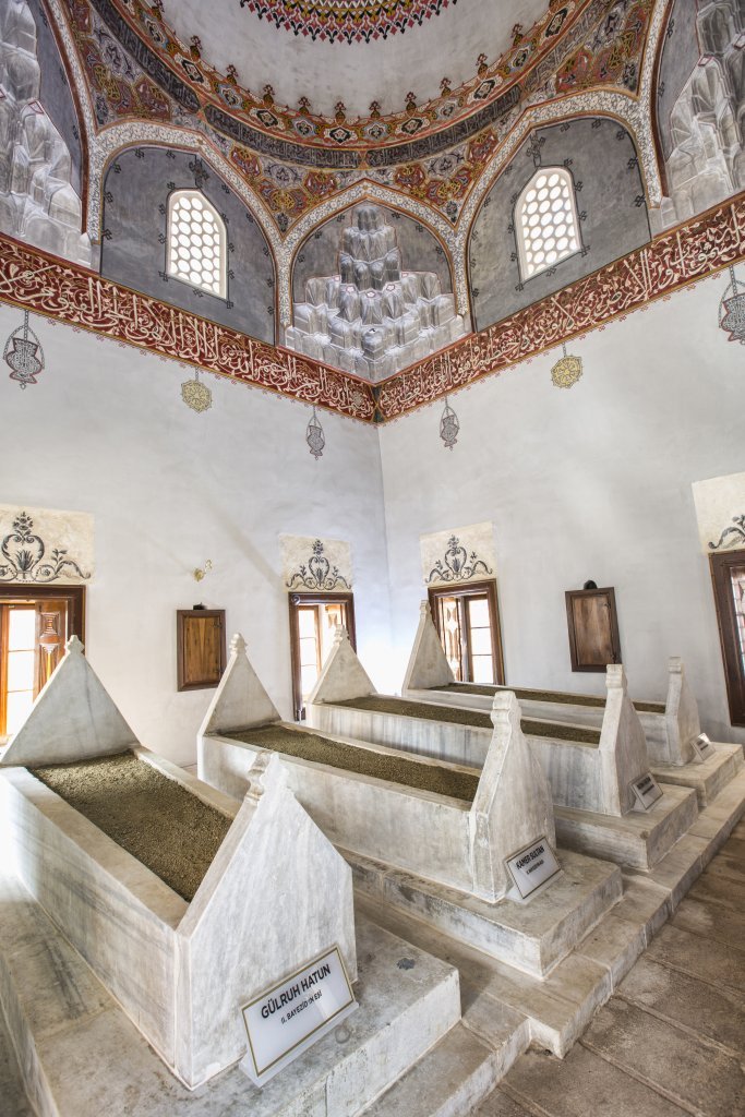 Türbede dört adet mermer mezar bulunmaktadır. Tarihi kayıtlarda geçtiğine göre bu mezarlar: II. Bayezid’in eşi Gülruh Hatun, kızı Kamer Sultan, Şehzade Alemşah’ın kızı Fatma Sultan ve Kamer Sultan’ın oğlu Osman’a aittirler.